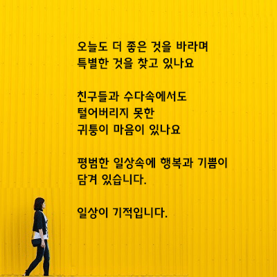 ` 오늘도 보낸 일상의 모든 것이 기적입니다.